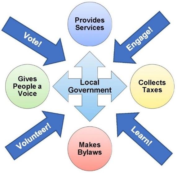 What is local government? Local governments are citizens elected by citizens. It is the most accessible and responsive level of democratic government in Canada. Local government plays two roles in the lives of its citizens. First, local government is a political body, elected to allow its citizens a voice in the direction and manner in which a city grows and prospers. Second, local government is a service provider, tasked with ensuring the community has access to the daily services that allow it to function. In short, elected council members set the direction and policy of government while city staff attend to the operational needs of the organization.